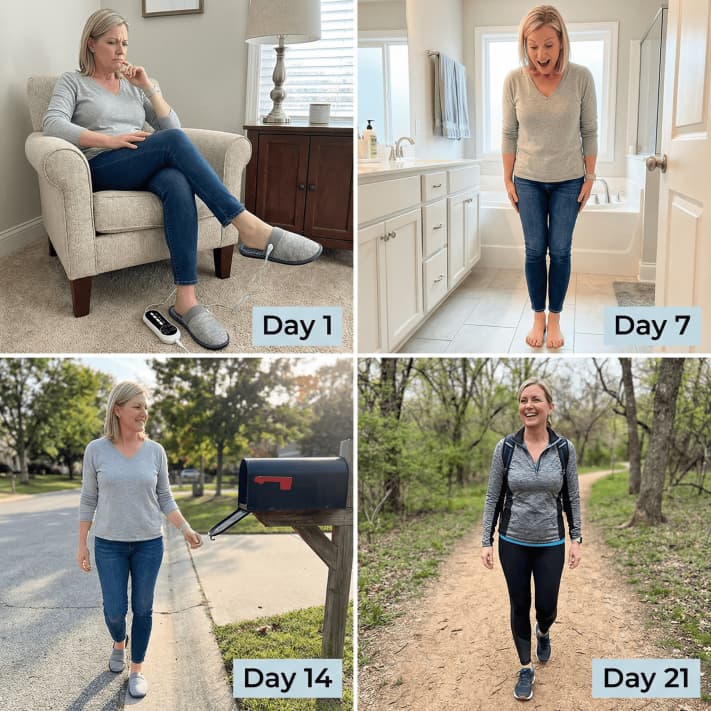 "Went on the nature trail behind our house. First time in 3 years. Walked for 20 minutes. My feet were tired but not burning. Not numb. Just... normal tired. I forgot what normal tired felt like. This thing gave me my life back."