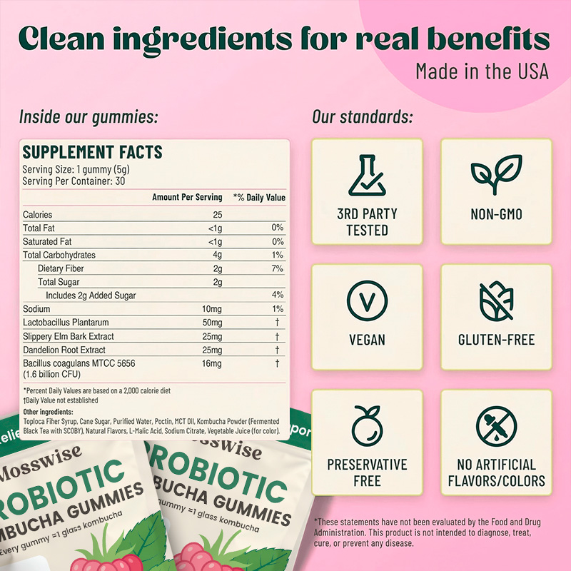 Mosswise, born from a passion for gut wellness and deeply rooted in American innovation, is a premium line of probiotic gummies that represents the pinnacle of convenient and delicious nutritional design. We've transformed the powerful benefits of raw kombucha into a simple, great-tasting daily ritual, embodying a commitment to quality craftsmanship and ingredients you can trust.